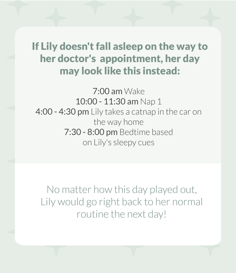Do you need to aim for a nap at home to accommodate your plans? Try shifting nap a little earlier or later that day but know that the nap length might be different for that day.